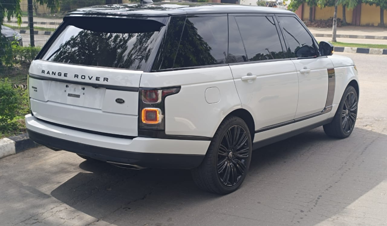 The 2020 Land Rover Range Rover Autobiography combines luxury and performance, offering a commanding presence on the road. White exterior and black interior enhance elegance, comfort, and style.